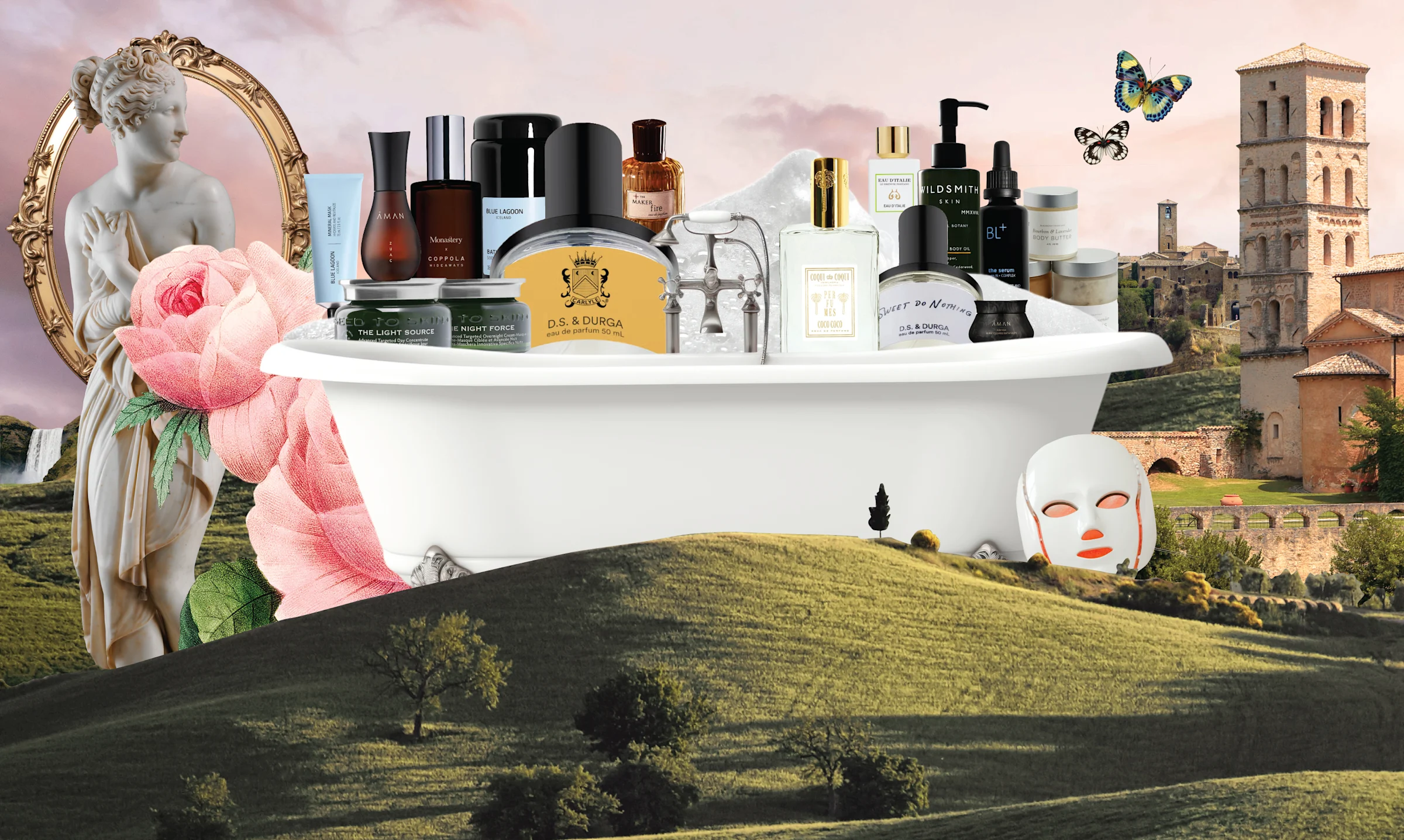 David Moltz, the self-taught nose behind the Brooklyn fragrance house D.S. & Durga, has a go-to phrase for his line of work: “Perfume is armchair travel.” Indeed, in one clear whiff, an olfactive portal cracks open, taking you to a radio repair shop in Mumbai or a cypress grove set among Roman ruins. If a bottle in hand can ignite an imaginary journey, it’s no surprise that a far-flung destination would bottle up its own sense of place. That explains the current wave of beauty launches from hoteliers across the globe. It’s not enough for luxury travel to set the stage for ephemeral pleasures, to be experienced only in situ. Now, there are handheld emissaries to take home — everything from body butter infused with local chamomile, to bath oil that evokes an alpine hike, to face serum supercharged with geothermal seawater.