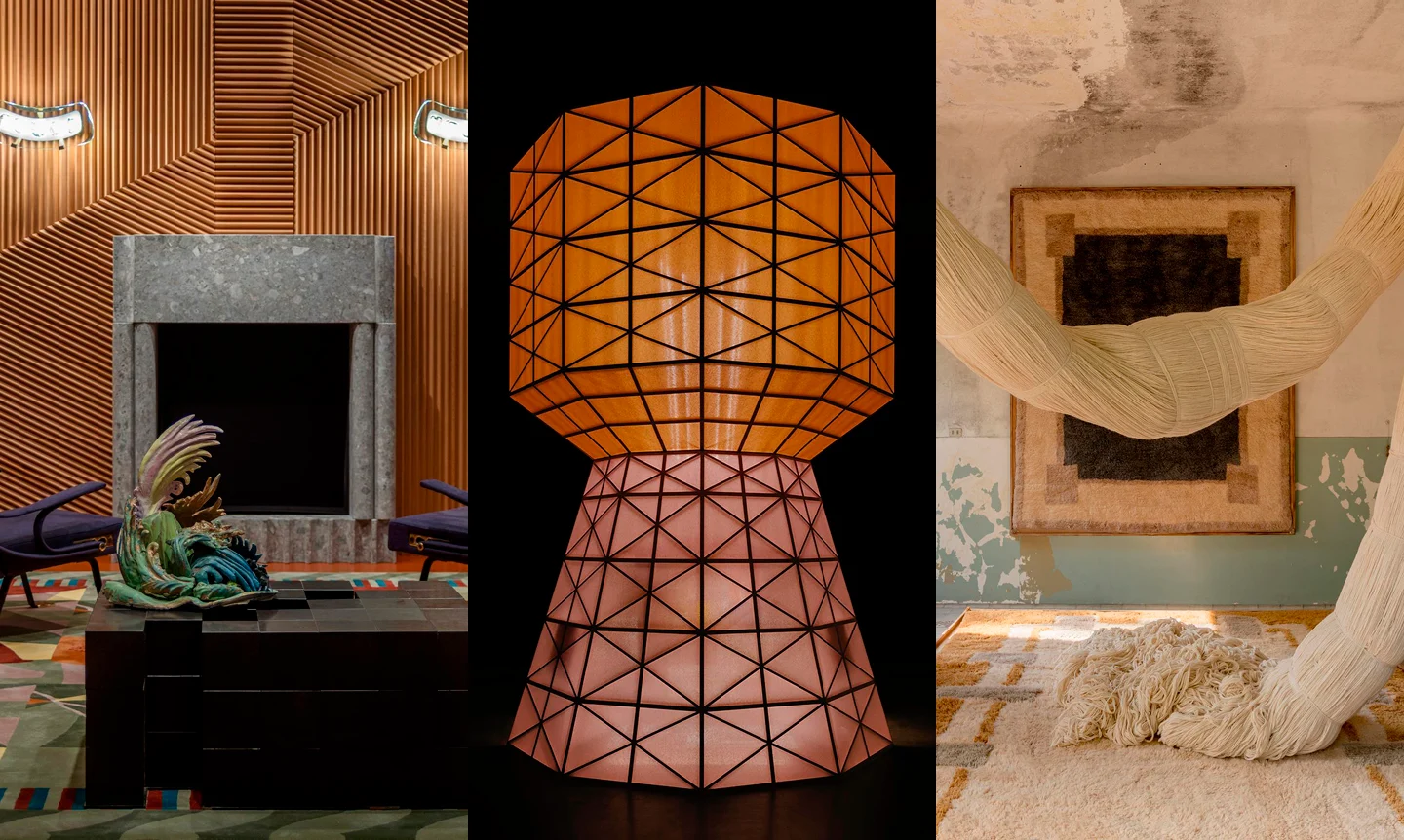 Alcova, which is located a lengthy eight metro stops from the Duomo, took center stage at Salone this year, becoming Milan’s hot area to watch. Alcova saw some of the most innovative of this year’s exhibitions, from a collaboration between Morocco’s Beni Rugs and interior stylist Colin King—in which muted tones recalled the entryway Terrazo floors of Milan’s most elegant palazzos—to the debut wallpaper collection of Nicol Castellini Baldissera, the Italian author of Inside Tangier (a PRIOR office mainstay). Laila Gohar, the design world’s favorite chef-slash-culinary sculptress, was omnipresent in Alcova, showing the range of her Gohar World tableware products in collaboration with Gucci; their divine ricotta candle embodies the collection’s seamless fusion of all forms of good taste. On the topic of candles, British designer Luke Edward Hall made several ceramic ones, along with plates in collaboration with Italian brand Ginori. The collection featured illustrations of five fictional destinations with names like “Bat Creek Ridge,” embodying the designer’s signature playful touch and high-kitsch aesthetic.