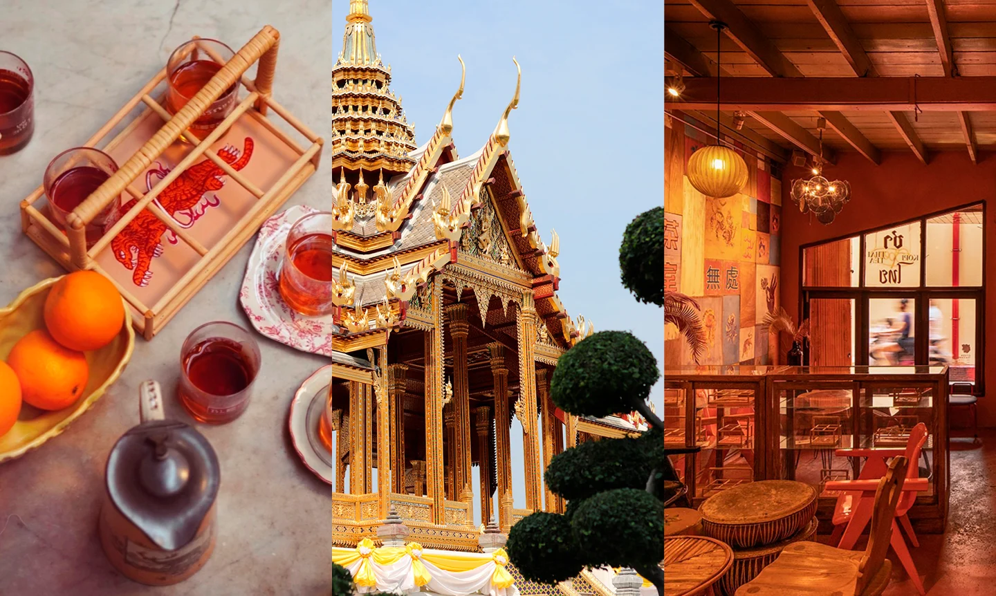 With its off-the-grid location and bright-orange tiled facade, Citizen Tea Canteen, an artisanal tea house in the riverside enclave of Talad Noi, offers its own brew on traditional Thai milk tea culture. Artist and restaurateur Saran Yenpanya is an expert at blending the old and the new, including flavors inspired by local fare, such as a herbal melange that echoes the flavors of a nearby cult duck noodle dish, and sweet teas with notes of ancient Thai khanom. The café’s hand-painted wooden wall and colorful wallpaper have an old-school feel, whereas the assortment of bamboo serving trays and embroidered windbreakers made from dead-stock linen on sale feel unexpected and new. 64 Soi Wanit 2