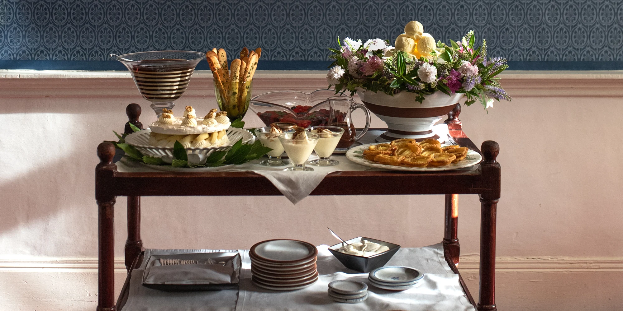 The spirit of the late Myrtle Allen, the founder of Ballymaloe House and pioneer of the Irish Food Movement, lives on in the trolley. Introduced by Allen when she opened her grand, wisteria-covered family home and 300 acres of fertile farmland to paying guests, it began as a practical way of presenting desserts which relied on what was in season and what was being sold by the neighboring farms.