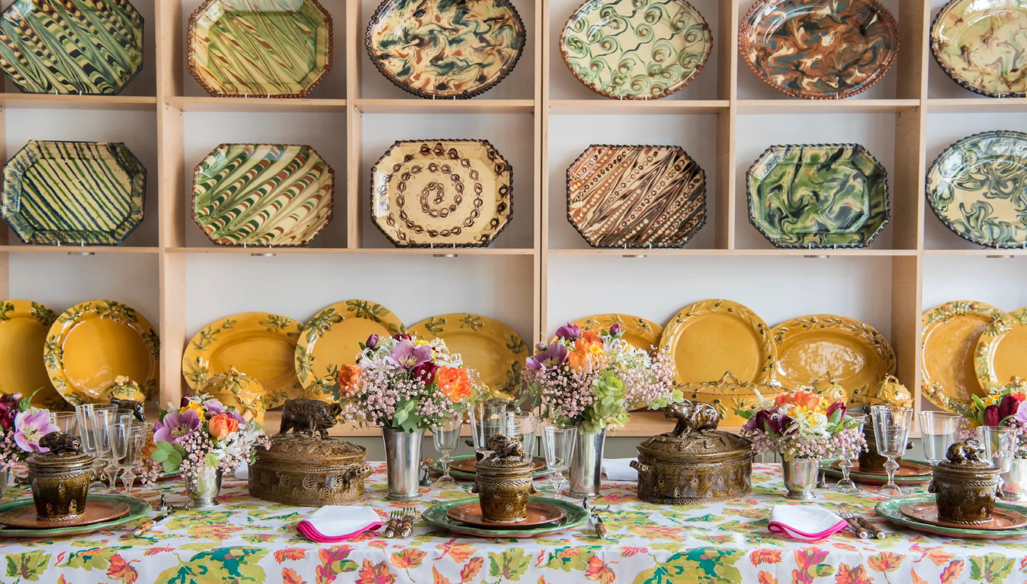 The pieces are charmingly decorative; some technically so — like the selection of marbled ceramics, a pattern that is actually fashioned into the clay and not the glaze. All have that recognizable touch of the hand. "Perfection is not the aim, and productivity even less so," Goujou says. "In the end, I wanted to create a lifestyle around the pottery. They are beautiful, but they have a functional quality.” However artistic and worthy of collecting they may be, these ceramics are to be enjoyed, making for a true art de la table.