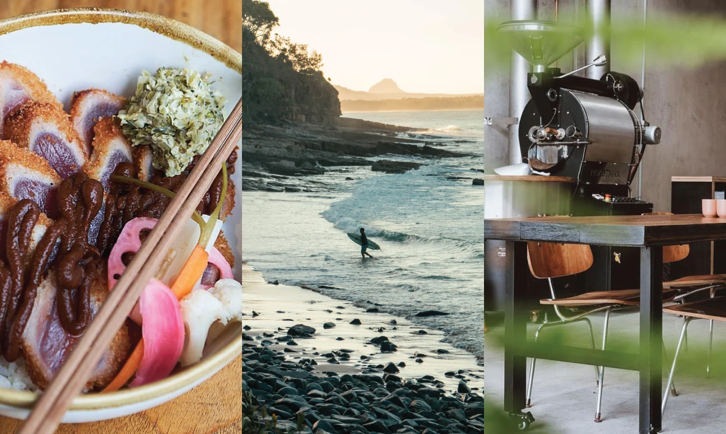 But beneath the Noosa that Australians know and love, there’s something special stirring, a new sensibility for the Sunshine Coast town. Beyond Noosa Heads— and its well-trafficked Hastings Street— satellite pockets of creative energy are emerging in a renaissance for Noosa that hasn’t been seen since the 1970s, and it’s happening in the most unexpected of places: on Noosa’s outskirts, in its industrial zone— commonly referred to as “Noosaville”— where coffee roasters, breweries, artisanal wares shops, and designer surfboard shapers sit alongside panel beaters, warehouses, and big-box stores; and in “Noosa junction,” previously home to some supermarkets, banks, takeaway food outlets and not much else. Here, multiple new restaurants have formed nightly “eat streets,” with tables spilling onto the sidewalk for alfresco dining, while a crop of tucked-away bars have sprouted in unassuming side streets. Meanwhile, in the lush, mountainous Noosa farming hinterland, sleepy villages straddling railway lines have become home to distilleries, artisanal cheese shops, and design-forward homewares stores.