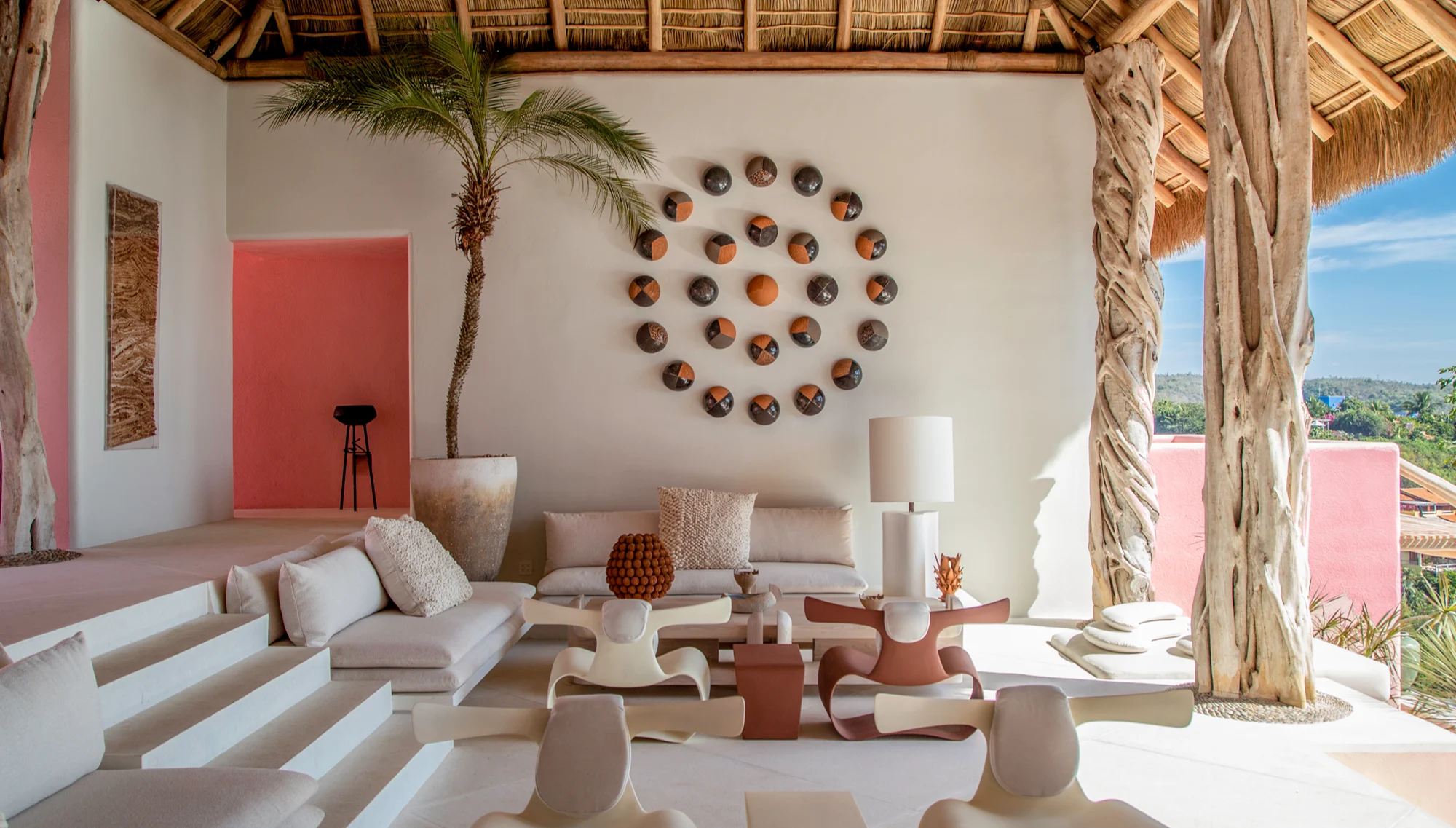 Lulu Luchaire had long spent a nomadic existence pinging between her native Paris, London and LA—until, that is, she stood on the swooping white terrace of Tigre del Mar, a villa on a Pacific-facing cliff in Careyes owned by the son of the enclave’s nominal patriarch, Gian Franco Brignone, and decided to put down roots. “It was mind-blowing," recalls the former Apple exec, who had flown in to stay with a friend for New Year’s, which inevitably draws a well-heeled jet set on the Patmos-Minorca-Lamu grand tour. “I thought I’d landed in wonderland.” Equally bewitching was Tigre del Mar’s library, dubbed Tres Mil (“three thousand”), the year Brignone believes aliens will come, featuring a tall ladder that leads to a bottle of tequila left there “to properly greet the aliens so they can have a shot and learn about human cultures on planet Earth from the beautiful collection of books,” Luchaire explains. She eventually rented an avocado-green villa by the sea and five years ago founded Ondalinda, a five-day global gathering in November that’s a fizzy mix of shaman-led ceremonies, installations by emerging Mexican artists and candlelit communal dinners benefitting indigenous communities through the Ondalinda Foundation.