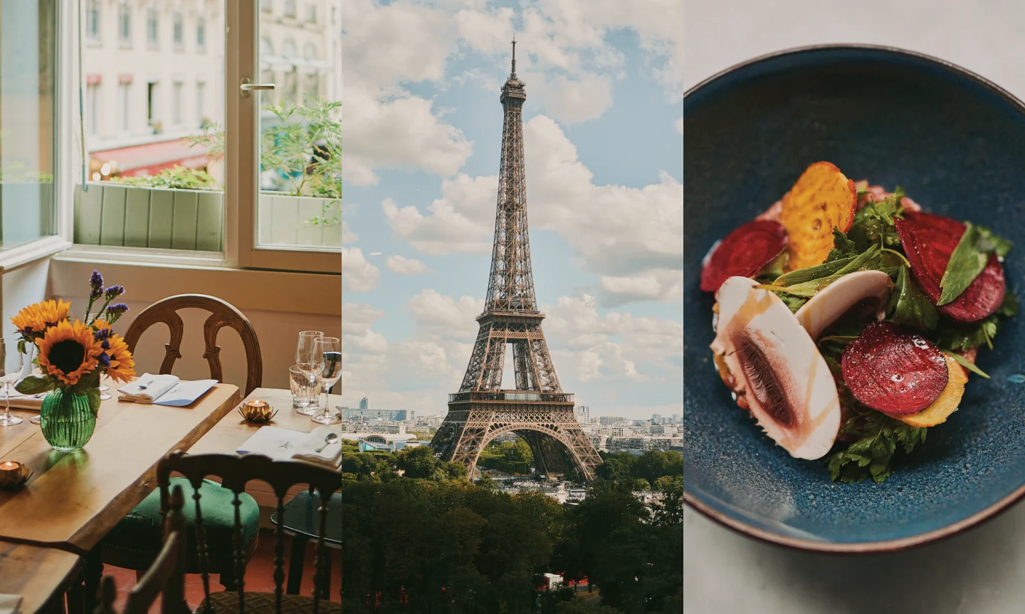 A stroll with Chef Dominique Crenn through the Raspail Market tasting cheeses from the Normandy, Auvergne and Loire regions, discovering the finest in-season produce and meeting artisans and farmers. A lunch at the mythical Les Enfants du Marché in the Marché des Enfants Rouges, serving ethically sourced ingredients in simple and tasty recipes paired with natural wines.