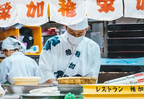 Depachikas bristle with activity. While scanning the sandos filled with fluffy egg salad or grapes and whipped cream, you might hear fishmongers hawking the day’s catch—rich yellowtail for sashimi, perhaps, or sweet Hokkaido scallops for searing.