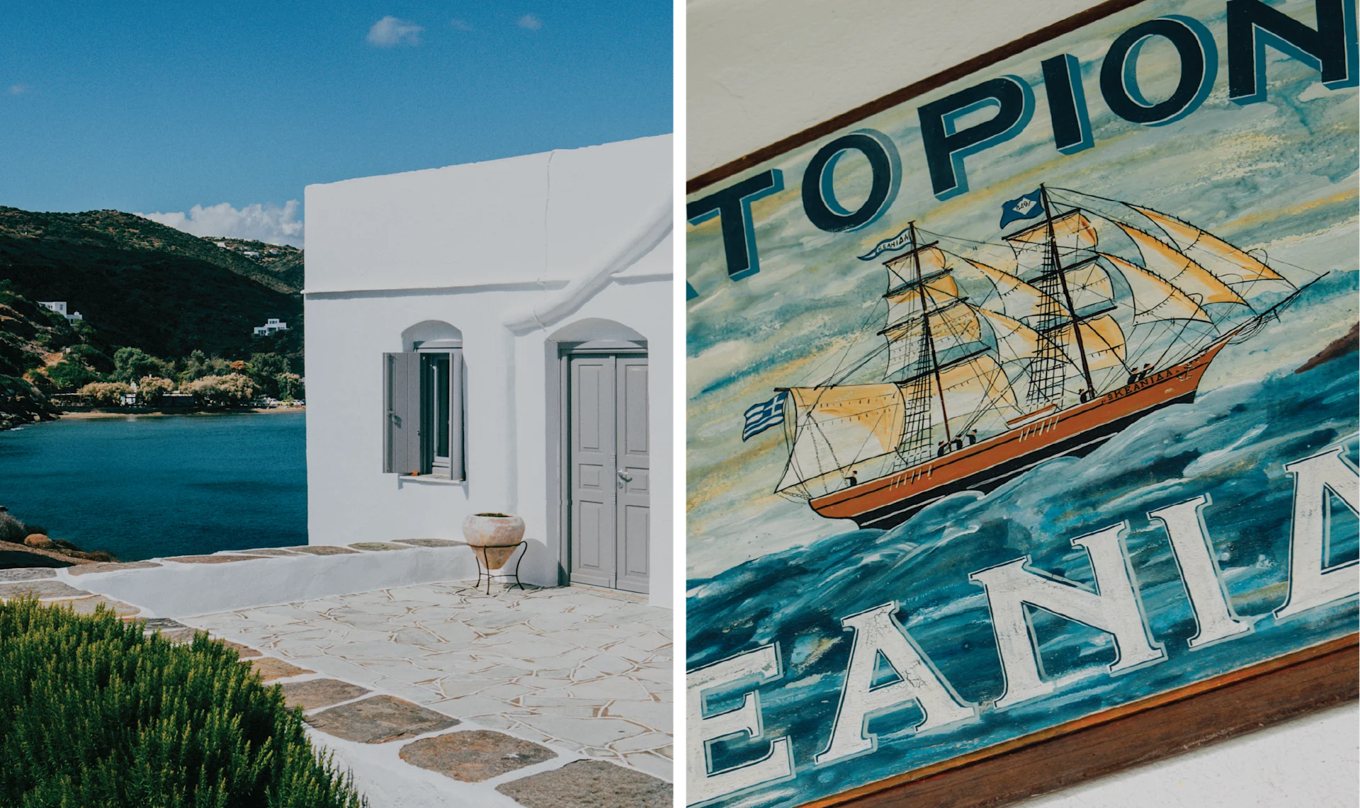 The air is thick with diesel and salt, but there’s another smell wafting from the café: spanakopita, flaky spinach and feta pastry, still warm in its tray. I take a slice, along with a freddo cappuccino, and step outside. The sun is rising low and orange over the Aegean Sea as the boat rocks gently toward Folegandros.